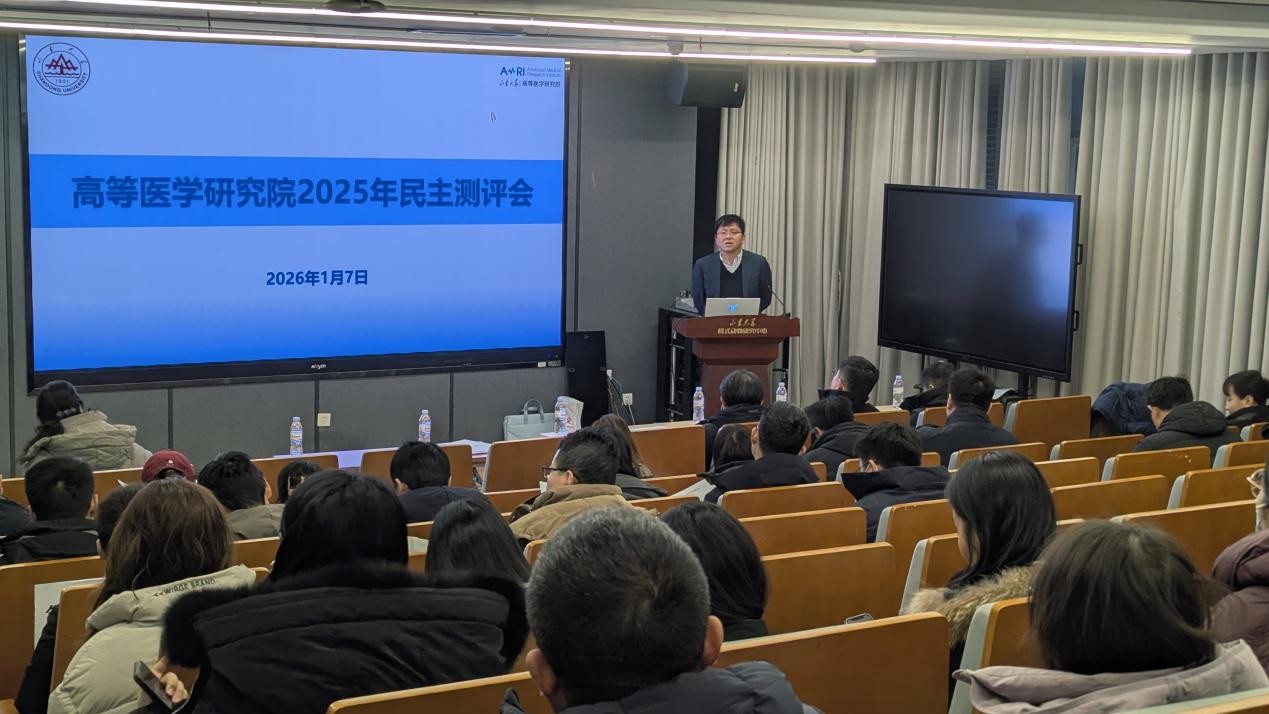 1月7日上午,高等医学研究院2025年度领导班子述职及民主测评会在趵突泉校区模式动物中心报告厅召开。高等医学研究院院长孙金鹏,副院长刘招舰、周成超、肖鹏及全体教职员工参加会议。