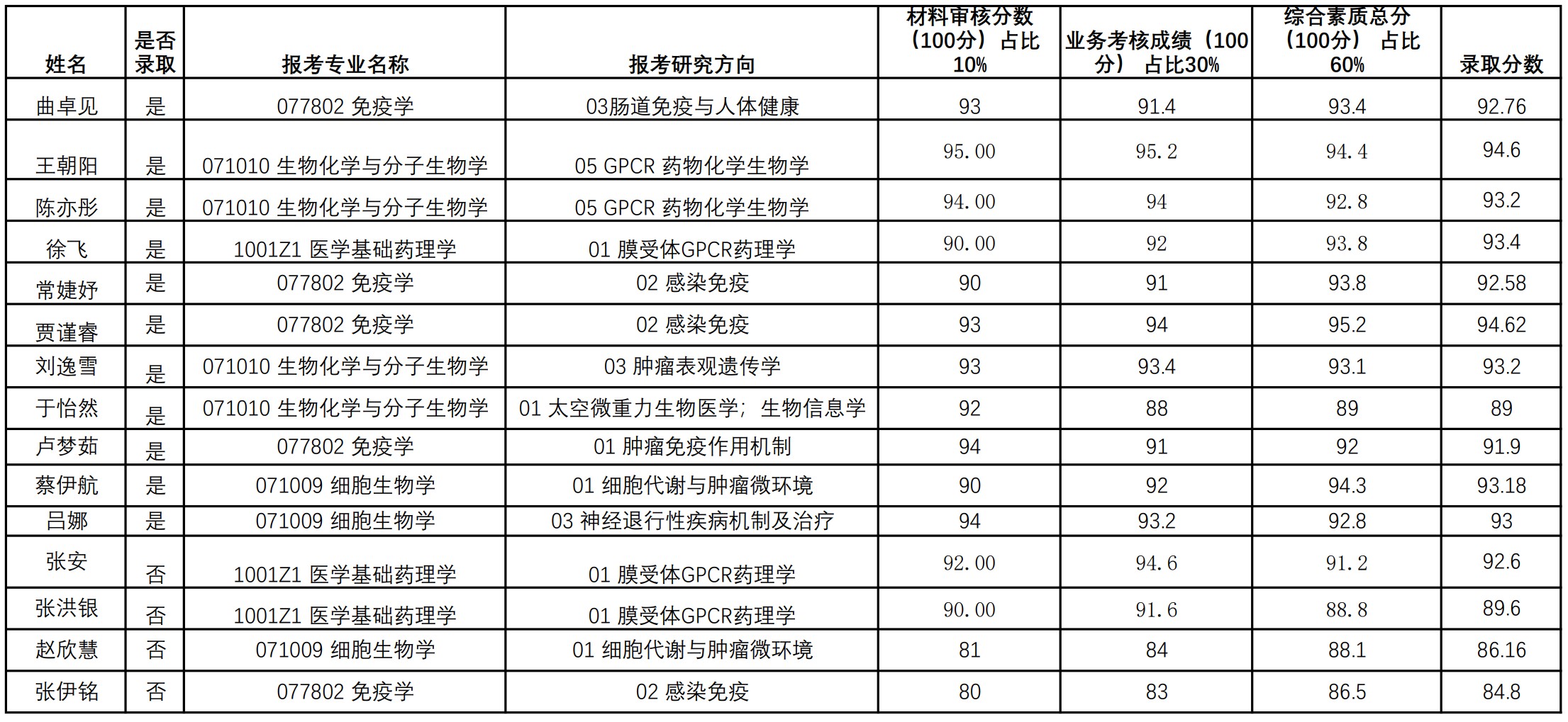经材料审核、专业课考核、综合素质考核等环节,高等医学研究院确定录取曲卓见等11位同学为2026级博士研究生,具体情况和名单公示如下: